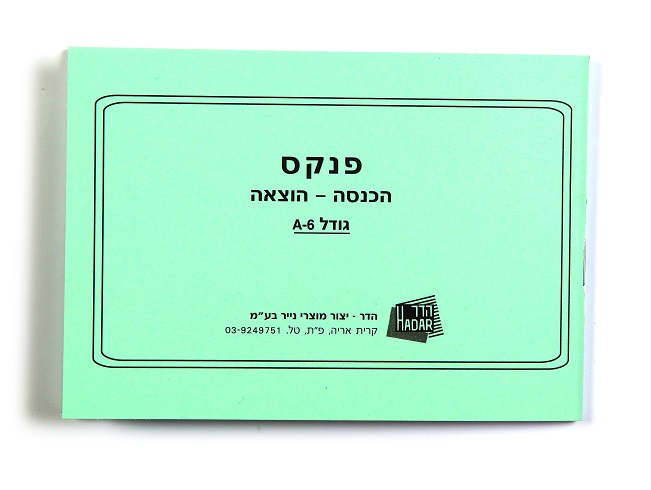 פנקס לרישום של הוצאות והכנסות יומיות, למעקב אחרי חשבון הבנק, חנויות ובתי עסקים ועוד... שורות למילוי בפנקס: יום, פרטים, הכנסה, הוצאה, יתרה. מידות: 10X14.5 ס"מ (A6) מס' דפים: 30